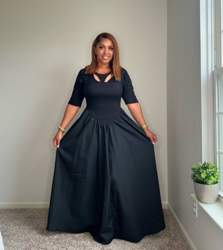 This stunning long maxi dress boasts a keyhole neckline that adds an alluring touch to your ensemble, making it perfect for special occasions, date nights, or any event where you want to make a statement.